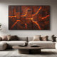 Ett helveteslandskap i struktur och färg. Detta arbete fångar jordens råa kraft i utbrottet, med sprickor som avslöjar en brinnande eld och en intensiv palett av toner som framkallar makt, förstörelse och underjordens mörk skönhet.