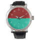 Denna vackra klocka har klassiska vita siffror på en krimson- och akvatisk bakgrund. Vem säger att elegans måste vara tråkig?