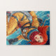 "With fiery hair blazing against the vastness of space, she soars into the unknown, a fearless explorer chasing the edges of the cosmos. Clad in a vivid yellow spacesuit and armed with determination, she navigates alien worlds where danger and wonder intertwine. This artwork captures the spirit of adventure, blending retro sci-fi charm with the bold elegance of Japanese anime—inviting you to piece together a journey beyond the stars."