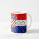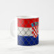 This bold Croatia flag mug shows the red, white and blue stripes and the official Croatian coat of arms seen through a realistic steel chain-link fence, symbolizing security, borders, protection and independence. A powerful design for showing Croatian pride, national identity and strength in a modern, eye-catching graphic style.