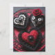 Crochet Gothic Valentine Red & Black Hearts Julkort