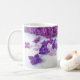 Kaffe mugg med en fotobild av mina ursprungliga, virkade, lilaska blommor.