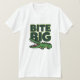 I snyggten har Tee en krokodilkonstruktion för öga med ord "stor Bita" på den.