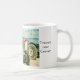 Ett vitt kaffe mugg med en traktorbild på stranden vid Öster Runton, Nr Cromer, Norfolk, Förenade kungariket; från en mjuk pastellmålning av Judy Adamson. Kort, utskrifter och poster finns också tillgängliga