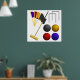 Decorate your game room or summer house with this classic croquet equipment poster. The high quality illustration features a traditional wooden mallet, colorful game balls, and silver wickets arranged in a clean and stylish layout. This wall art is perfect for sports enthusiasts looking to add a vintage lawn game aesthetic to their home decor or club house. It makes a thoughtful gift for anyone who loves the heritage and strategy of traditional outdoor recreation.