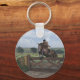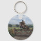 Den här nyckelkedjan har en originalgrafik av en häst och hoppar över en gård grind, skapat i Vue av konstnären Jayne Wilson.