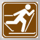 Vägskyltar och vägskyltar i internationell som ger råd om fritidsanläggningar, närmare bestämt cross country skidåkning.