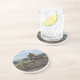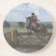 Sandstone Underlägg en originalgrafik av en häst och hoppar över en gård grind, skapat i Vue av konstnären Jayne Wilson.