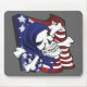 Patriotiskt skalle och korsben med blå bandana sätts på den amerikanska flagga.