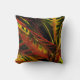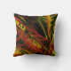 Detta färgstarka dekorativ kudde har en modern abstrakt mönster av tropiska löv i rött, orange, gult, grönt, brun och svart. Kronväxten är berömd för sin briljanta färgad som kommer i ett regnbåge av färg. Det används för landskapsvård i tropiska klimat och odlas som en husväxt där det är kallare. Utformningen upprepas på baksidan.