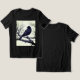Tee in a black-and-white illustration featuring a sleek black crow perched on a gnarled, leafless branch. The bird's detailed feathers contrast sharply with the stark, skeletal tree limbs, creating a dramatic composition.