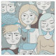 Crowd Ansikte Blue/Beige ID494 Tyg