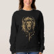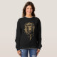 A striking, stylized portrait of a lion rendered in bold golden tones against a deep black background. Its flowing mane, sharp yet fluid, seems to merge with abstract shapes and leaves, giving the impression of both wildness and grace. The lion’s piercing eyes convey strength, authority, and wisdom, making it a symbol of courage, leadership, and resilience. The interplay of light and shadow creates a sense of depth and intensity, giving the artwork a regal, almost mythical presence. Perfect for evoking power, nobility, and untamed spirit.