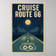 This litho style poster captures the cool, quiet thrill of a midnight drive. Featuring the "Cruise Route 66" headline, this design highlights the highway glowing under a full moon and starlit desert sky. It’s a perfect piece for anyone who loves the nighttime side of the Mother Road. As part of this collectible Route 66 series, it’s made to be hung alongside the sunrise and midday posters so you can show the full 24-hour spirit of the American West on your wall.
