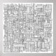An intricate square coloring page design titled Urban Cipher. Stylized graffiti glyphs are arranged like a mysterious code within the tight confines of a geometric grid. This dense, detailed line art challenges the colorist to interpret the urban cipher and abstract symbolism.