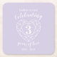 Tredje bröllop-årsdagen för firandet av tre år av underläggen kärlek party. Enkel kontur för grafik på hjärtsten, vit grafik och blek lila färg 3:e Bröllop-årsdagen underlägg. Anpassa med din egen tredje bröllopsfest-information. Tredje årsdagen förknippas traditionellt med kristaller och hjärtat symboliserar kärlek. Grafik och design av Sarah Trett för www.mylittleedenweddings.com på zazzle.