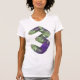 Ett intressant typsnitt av verkligen är det som nummer tre görs i. Numret 3 är stort och har ett kristalltypsteckensnitt ansikte. Det har grönt och lila som färgämne. Den här designen med kristalltypsnitt nummer 3 ser underbar ut på den här kvinnans t-shirt. Perfekt för dig själv eller som gåva