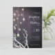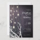 Crystal Lodrät Light String White Gren bröllopsinbjudning. Modern Elegant Winter and fall-design har vit och svart manzanita grenar med kristallljussträngar på en grå stenbakgrund av svart lila. Anpassa den med dina detaljer och ta bort eller lägga till text.