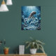 A mesmerizing crystal octopus glides through a vibrant coral reef, its flowing tentacles formed with faceted gemstone textures, clear quartz shine, and iridescent blue-violet reflections. Elegant suction details and fluid movement blend marine realism with luxurious fantasy design. Tropical fish, coral gardens, sunbeams through clear water, and drifting bubbles create a magical underwater world full of motion and color. Perfect for beach homes, bathrooms, kids rooms, ocean lovers, and collectors seeking unique premium wall art.