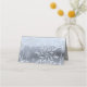 Vinterbröllopet, det hopfällda platskortet i isig silver-blått utseende, med kristalltittar snöflingor och söt blomning. Ett vitt textområde i silver, framtill, kan du anpassa för hand.