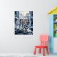 A powerful tiger prowls through an icy canyon, its bold stripes transformed into luminous crystal bands of faceted quartz and pale sapphire light. Gemstone structures along the spine and tail catch the sunrise with subtle rainbow reflections, creating a fierce yet luxurious design. Towering ice walls, drifting mist, frozen streams, and distant mountains enhance the cinematic atmosphere. Striking and unforgettable, this artwork is ideal for bold interiors, tiger lovers, modern spaces, offices, and premium wildlife décor.