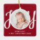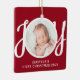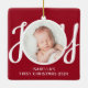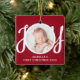Den här söta Baby första julfoto Ornament dekoreras med ord JOY i snyggt skripttypografi på röd bakgrund. Anpassade enkelt med ditt foto, namn och år.