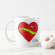 This mug design pays tribute to the Cuban homeland with an emotional and powerful image. In the center, the island of Cuba rises proudly, from which emerges a vibrant and fluttering Cuban flag, enclosed in a heart. This symbol of love and belonging is reinforced by the phrase "No soy un exiliado, porque llevo a Cuba en mi corazon", which complements the design. The combination of these elements captures the deep sense of identity and nostalgia, making this mug a perfect tribute for those who, no matter where they are, always carry their beloved Cuba in their hearts.
