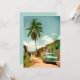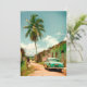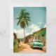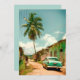 Bild från en sandgata på Kuba land. Sommardag med stora handflatan träd, kubanska kvinnor och en amerikansk äldre bil.