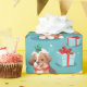 Cute-valpar i jultomten och inslagna gåvor till jul, - perfekt för omslagning av julklapp till sällskapsdjur