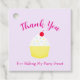 Cupcake baking birthday party for kids. Features a cupcake decorated with colorful sprinkles with a cherry on top