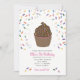 Personlig chokladcupcake med regnbågsfärgade sprinkles-fest inbjudan. På grund av skillnader i bildskärmar och enhetens displayinställningar kan de tryckta färgerna variera något från vad du ser på skärmen. Tack för att du besöker Walt & Ellie