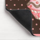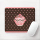 Ett rosa och brunt färgtema pryder denna cupcake-musmatta.