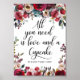 Elegant men modern boho stil blomsterbröllop CUPCAKE STATIV SKYLT (Allt du behöver är kärlek och en cupcake). Bukett av akvarellblommor i burgundy, röd, marsala, vin, merlot, marinblå och rosablommiga färger. Perfekt för höstbröllop. Lätt att redigera - anpassa med din text. Se samling.