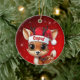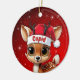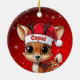 Cupid! Celebrate the holiday season with this festive round ceramic red ornament featuring an endearing woodland forest animal cartoon graphic of a cute baby reindeer wearing a Santa hat. Perfect deer with antlers for decorating your tree or as a thoughtful gift, this whimsical doe decor makes a cherished keepsake for years to come. Customize by changing the text, the font, the font color, or remove the text. You can even transfer this design onto other products. Enjoy this design your way! Check out ForestBabies Xmas Deer Collection for matching decorations. 🎄🩌 Dimensions: Diameter: 2.87". Thickness: 0.156". Weight: 1.4 oz. Made of white porcelain. Full-color, full-bleed printing. Printing on both sides. Thread does not come attached/tied.