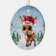 Cupid! Celebrate the holiday season with this festive round ceramic red ornament featuring an endearing woodland forest animal cartoon graphic of a cute baby reindeer wearing a Santa hat, and Merry Christmas written in white. Perfect deer with antlers for decorating your tree or as a thoughtful gift, this whimsical doe decor makes a cherished keepsake for years to come. Customize by changing the text, the font, the font color, or remove the text. You can even transfer this design onto other products. Enjoy this design your way! Check out ForestBabies Xmas Deer Collection for matching decorations. 🎄🩌 Dimensions: Diameter: 2.87". Thickness: 0.156". Weight: 1.4 oz. Made of white porcelain. Full-color, full-bleed printing. Printing on both sides. Thread does not come attached/tied.