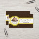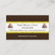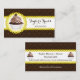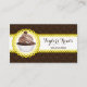 © 2014 Socialite Design. Konstruktion av elegant cuptårta i bakverk affärskort med chokladbrun dammmönsterbakgrund, gult snöre-banderoll för din text och en mocha cupkaka inuti en snöre-cirkel. Alla designade inslag kan storleksändras, flyttat eller tas bort till kostym när du behöver dem. Om du behöver hjälp med att anpassa kontaktar du Socialite Designs.