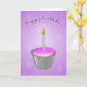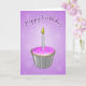 Sötfödelsedagskort med vaniljkaka med jordgubbsfrost och blå sprinkler för roligt som alla är inslagna i en finare-folie. Inuti texten finns anpassade. Original © Marianne Gilliand 3d och 2d digital grafik. Det finns matchande klistermärken.