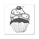 Illustration av en frostig cupkaka med körsbär på ovansidan.
