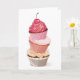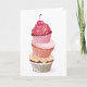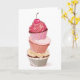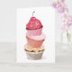 Kärlek muffinsar, då är den här designen perfekt för dig. Det är en coola-cuptårtskorsten. Det är tre muffinsar staplade på varandra. De har alla en underbar tittar isbildning och ser mycket välsmakande ut. Konstruktionen av den här cupkakan-stacken ser underbar ut på de här hälsningskorten