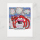 Vykort av en målning av Cindy Pop med Angel Cat på moln med en kaka.