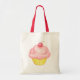 En rosa cupkaka på en bakgrund av sprinkler dekorerar väskan. Använda den här påsen med cupkakor som en te, väska, påse i bok, strandväska osv...designen kommer från en originalillustration.