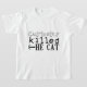 Typografisk design med detta ordspråk: "Kuriositet dödade katten" (framsidan). Utformning på vita barn t-shirt. Tillgänglig med vit design för mörk färg + Fransk översatt på baksidan (du kan ta bort den om du behöver). Matchar hemprodukter, poster, hälsningskort, kontorsprodukter, elektronik med mera...