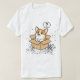 A curious corgi leaps from a cardboard box with an intrigued smile. Warm beige and white fur, striking outlines, and playful charm for pet lovers and cheerful clothing enthusiasts.