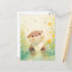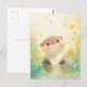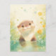 This enchanting postcard features a sweet, smiling otter peeking up from a shimmering turquoise pond. The artwork is rendered in a soft, ethereal watercolor style with a primary palette of mint green, lemon yellow, and soft cream. Delicate yellow wildflowers and tall grasses surround the otter, while magical light orbs and soft bubbles float through the sun-drenched air. With its peaceful atmosphere and lush botanical textures, this piece captures the quiet wonder of a bright spring day. It is an ideal postcard for sending a cheerful hello, a note of encouragement, or a warm seasonal greeting.