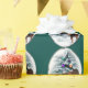 Vacker Curly Jackade Retriever som stod söt av ett dekorerat skogsland Julgran. Fin helgdag-dekanter och gåvor.
