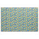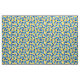 Struktur med en glidplatta mönster med kurvande sten i blå nyans och gult på vit bakgrund. Perfekt för bosättare och fläkt.