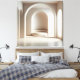 Eine ruhige architektonische Komposition mit einer sanft gerundeten Sitznische im Mittelpunkt. Weiches Licht betont die glatten Flächen, die vertikalen Strukturen und die klare Geometrie des Raumelements. Die gedämpfte Farbigkeit und die skulpturale Präsenz verleihen dem Motiv eine warme, zeitgemäße Atmosphäre — ideal für moderne Wohnräume und stilvolle Arbeitsumgebungen.