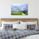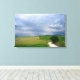 I ett landskap i Toscana med träd längs väg och vackra moln i himlar som leder till en destination i avstånd, trycks Canvas landbad på en slödd "strada bianca"-smuts med många kurvor genom grönt fält. En analogi för att nå ditt mål.