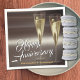 Den här årsdagen har två champagne flödar party med malltext för par namn. Anpassa fält, ta bort texten eller klicka på anpassa för att markera det teckensnitt stil, storlekt och färg som du vill använda.