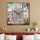 Custom 12 Family Photo Collage Rustic Wood Fyrkantig Klocka